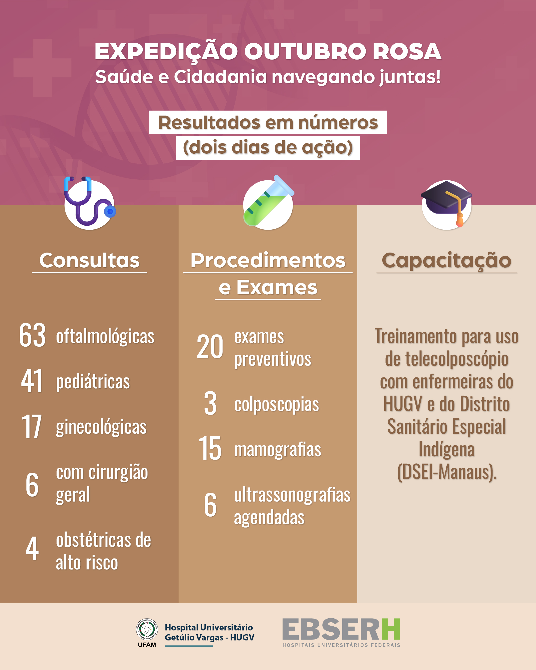 Uma operação pioneira do Hospital Universitário Getúlio Vargas (HUGV-Ufam), em parceria com a Marinha do Brasil e a OAB-AM, garantiu assistência médica especializada e cidadania diretamente para comunidades indígenas do Amazonas. A iniciativa, denominada "Expedição Outubro Rosa – Saúde e Cidadania Navegando juntas!", ocorreu nos dias 29 e 30 de outubro e marcou um avanço no acesso à saúde para essa população.