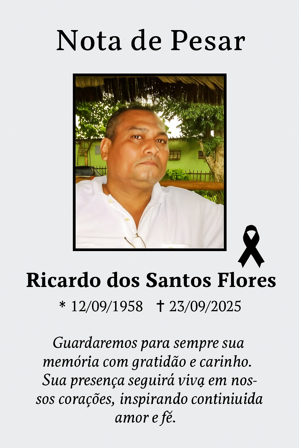 A Universidade Federal do Amazonas (Ufam) comunica, com profundo pesar, o falecimento do servidor aposentado Ricardo dos Santos Flores, da Prefeitura do Campus Universitário (PCU). Ricardo atuava na Infraero e foi cedido para a Ufam, onde desempenhou suas funções com dedicação.