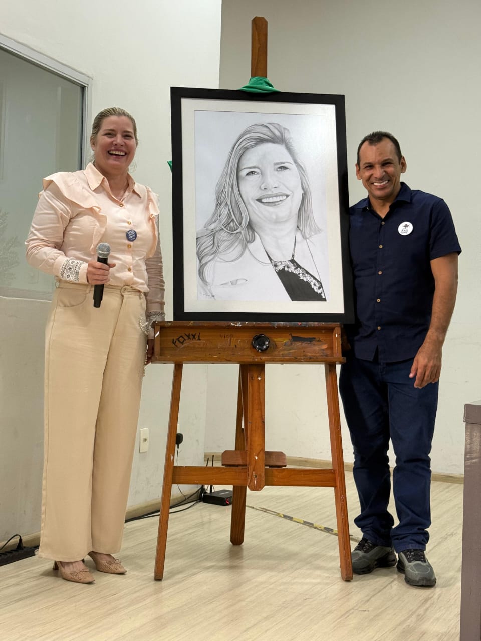 Após a palestra, Tanara Lauschner foi homenageada com a entrega de um quadro contendo um retrato seu, produzido pelo professor José Mario Silva de Oliveira, coordenador acadêmico da Faculdade de Artes da Ufam. O gesto simbolizou o reconhecimento da comunidade acadêmica ao trabalho e à trajetória da reitora.