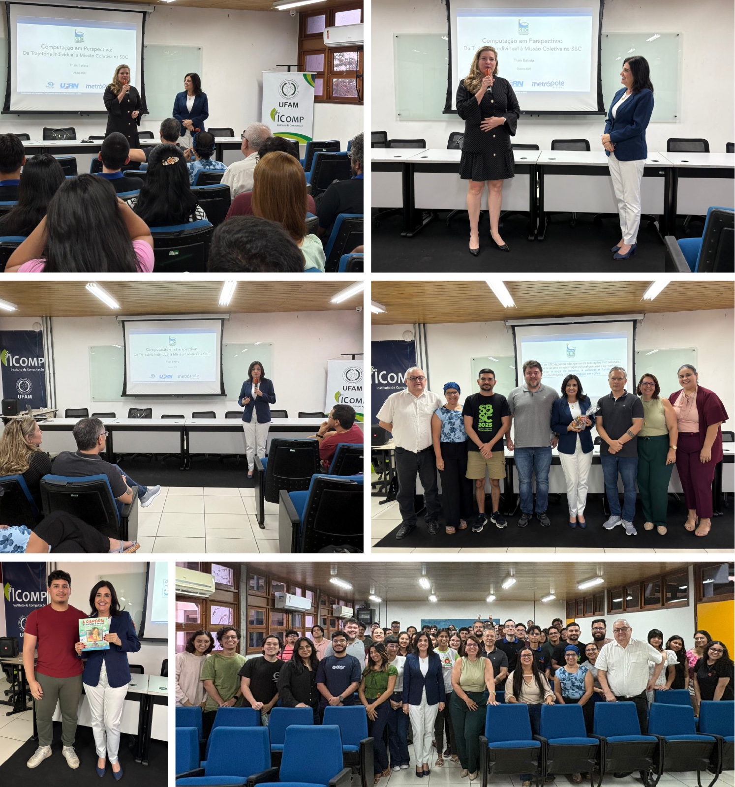 A Universidade Federal do Amazonas (Ufam), por meio do Programa de Pós-Graduação em Informática (PPGI), ligado ao Instituto de Computação (IComp), na tarde desta sexta-feira, 3 de outubro, recebeu a presidente da Sociedade Brasileira de Computação (SBC), professora Thaís Batista (UFRN), para proferir a palestra “Computação em perspectiva: da trajetória individual à missão coletiva na SBC”. O encontro aconteceu no Bloco 3 do IComp e esteve presente a reitora da Ufam e pesquisadora da área da Computação, professora Tanara Lauschner.