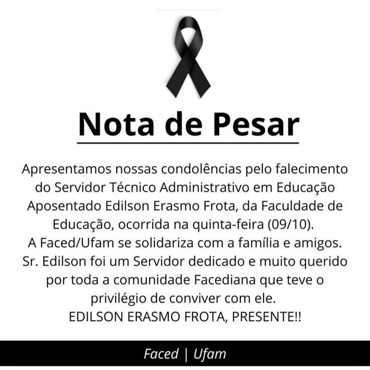 Nota de pesar - servidor aposentado Edilson Erasmo Frota da Faculdade de Educação
