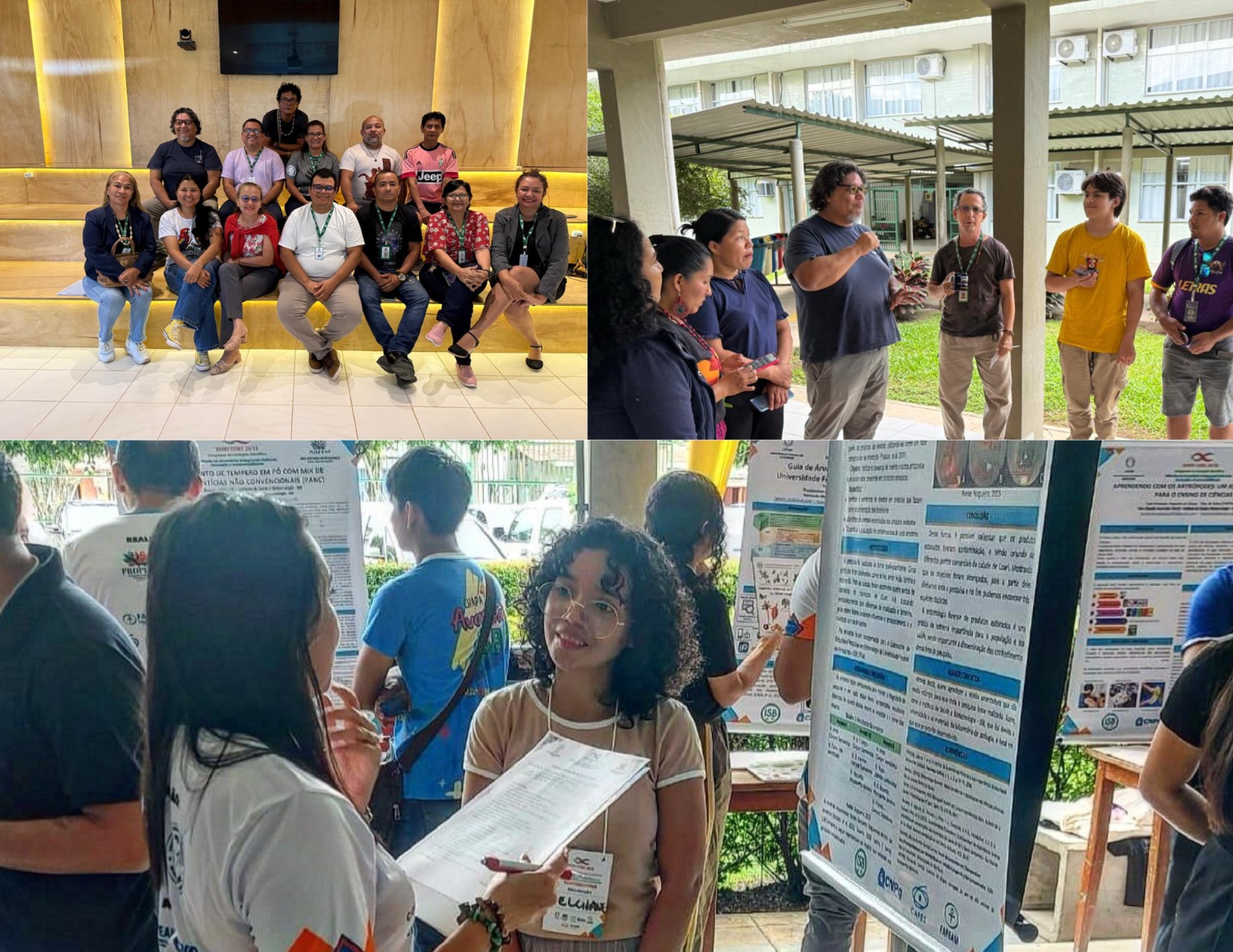 À tarde, o Hall do INC recebeu a Mostra de Extensão, coordenada pelo Comexi. Os projetos apresentados evidenciaram a diversidade de ações voltadas a escolas, comunidades ribeirinhas, povos indígenas e organizações locais, revelando o impacto das iniciativas no desenvolvimento social e educacional da região.