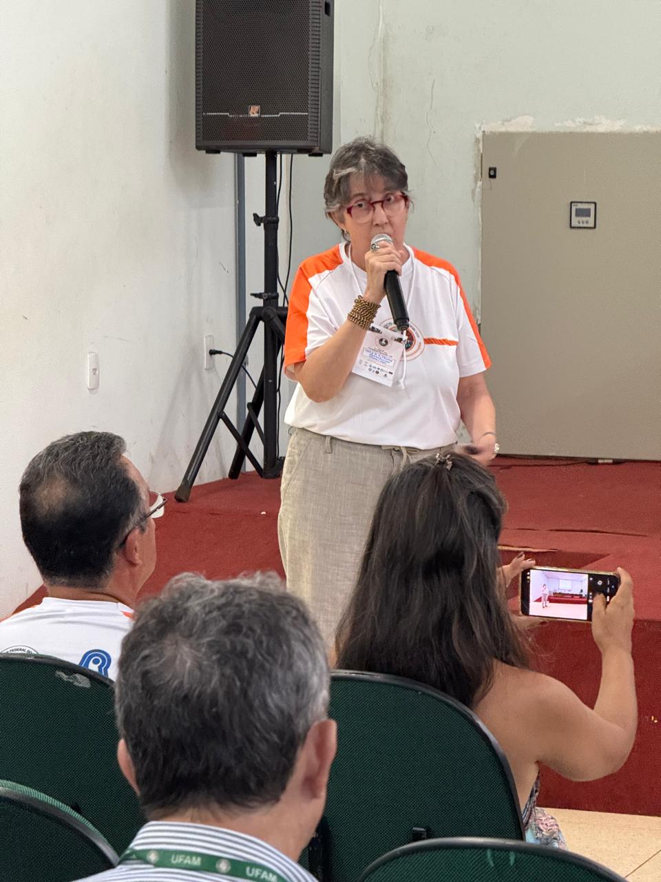 A professora Vânia Maria Nunes dos Santos (PPGEHCT/Unicamp) apresentou a conferência “Geoconservação, Participação e Aprendizagem Social: contribuições ao Plano de Ação da Geodiversidade”, abordando os eixos de Educação, Aprendizagem Social e Governança Ambiental. A pesquisadora destacou como processos formativos e a participação comunitária são fundamentais para a construção de políticas públicas sólidas, capazes de integrar geoconservação, gestão territorial e desenvolvimento sustentável em Presidente Figueiredo.