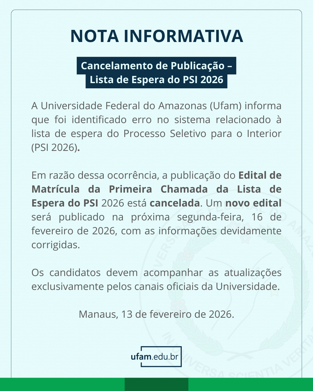 Nota Informativa - Cancelamento de Publicação do Edital de Matrícula da Primeira Chamada da Lista de Espera do PSI 2026