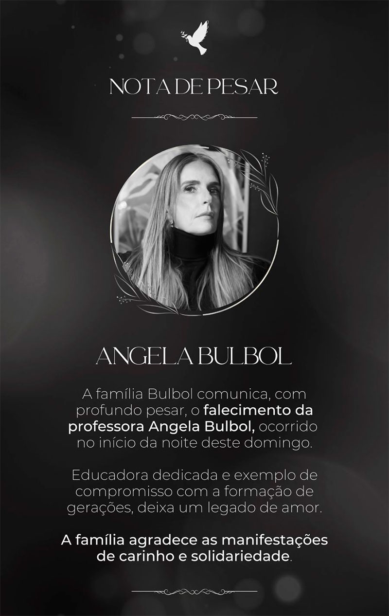 Nota de pesar - Professora aposentada Angela Neves Bulbol de Lima