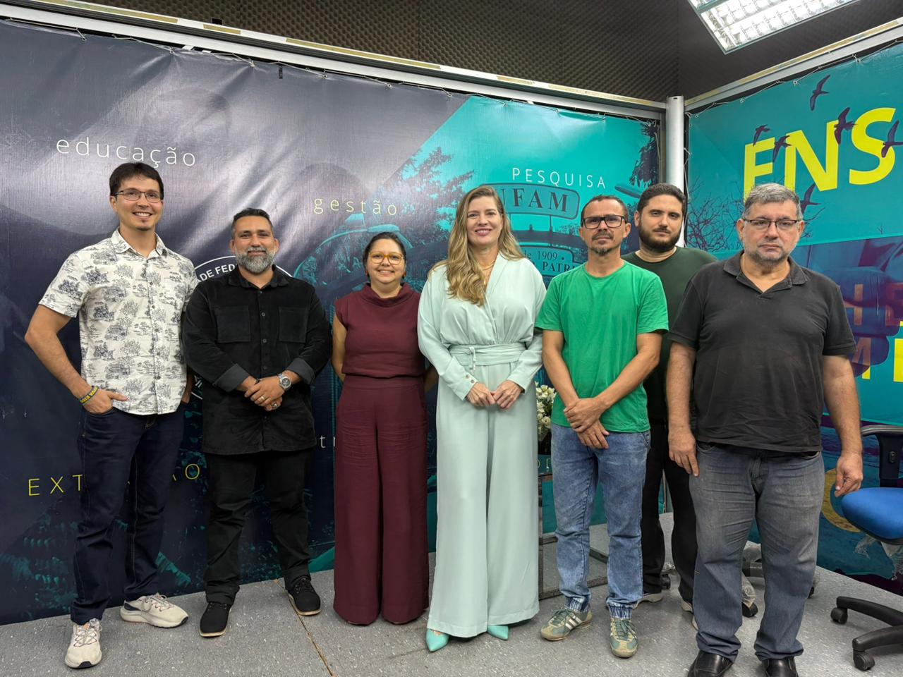 A pró-Reitora de Extensão, Professora Flávia Melo, ressaltou o esforço da gestão em consolidar a TV como um departamento estratégico e homenageou a equipe técnica, que garante o funcionamento diário da emissora. “Ao observar os produtos apresentados hoje, vejo um trabalho belíssimo. Desde que assumimos a Proext, temos estreitado o diálogo para que a TV Ufam se consolide, de fato, como um departamento da Extensão — indo além da burocracia administrativa para uma relação de verdadeira proximidade”.