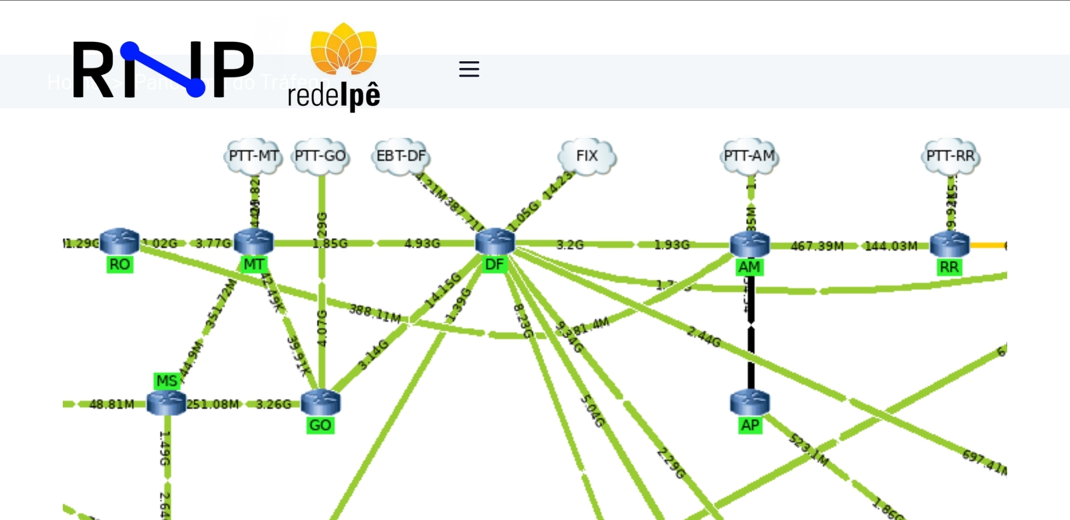 Para os usuários interessados em acompanhar o desempenho da rede, a RNP disponibiliza os panoramas de tráfego e disponibilidade em tempo real através do link: https://redeipe.rnp.br/panorama