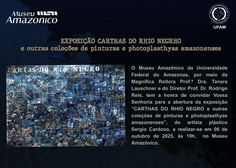 O Museu Amazônico da Universidade Federal do Amazonas (Ufam) abre suas portas, no dia 6 de outubro de 2025, para a exposição “CARTHAS DO RHIO NEGRO e outras coleções de pinturas e photoplasthyas amazonenses”, do artista plástico Sergio Cardoso.