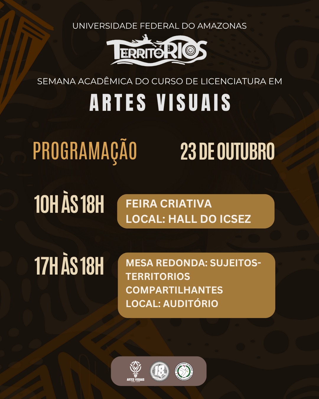 A partir desta quarta-feira, 22, o Instituto de Ciências Sociais Educação e Zootecnia (Icsez/Parintins) promove a retomada da Semana de Artes Visuais abordando a temática “TerritóRIOS”. A programação inclui diversas atividades entre elas palestras, apresentações musicais, a Feira Criativa, além do workshop “Um diálogo sobre a imagem gráfica – manipulação e colagem digital”. A Semana segue até a sexta-feira, 24, no auditório do Icsez.