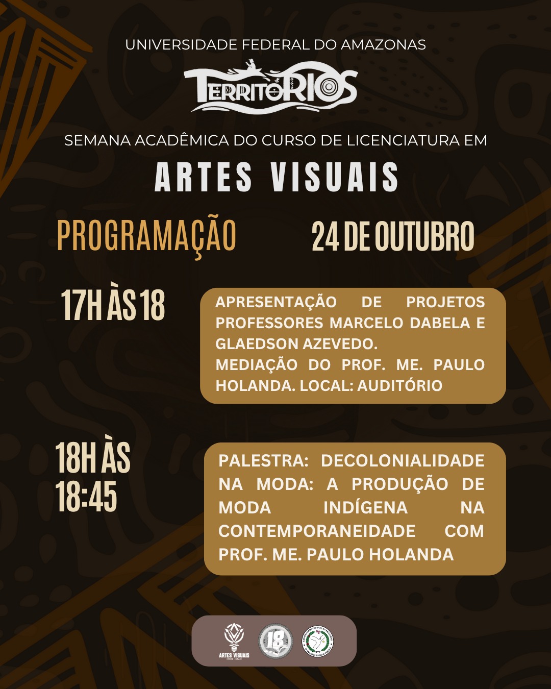 “A ideia é fazer uma Semana pensada no respeito em relação aos territórios e as confluências de tantas manifestações culturais, de tantos artistas, de tantos olhares da arte, da educação, da pedagogia, trazendo na nossa abertura, que será amanhã, os convidados dessas manifestações dos movimentos, dos artistas, para possamos falar, debater e apresentar um pouco do nosso curso. Como a perspectiva do nosso curso vem agora olhando mais para essa temática mais contemporânea, de assuntos tão relevantes para a nossa sociedade, principalmente tratando-se de Parintins, da Amazônia, tratando-se do Norte”, comentou um dos coordenadores do curso, o professor Carlos Carvalho.