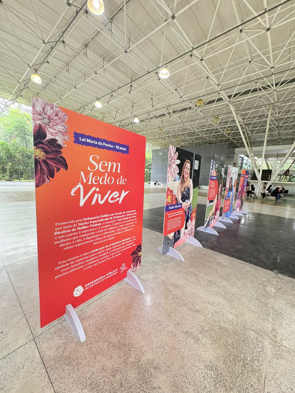 A exposição, instalada no Centro de Convivência, setor norte do campus Arthur Virgílio Filho, apresenta relatos com depoimentos completos de Rebeca Louise, Andréia Batista, Neuza Farias, Luciane Lopes, Darling Bessa, Simone Sousa, Vanderuth Sena, Elizabet Sousa, Brenda Oliveira, Nadia Macedo e Maria Mônica. Para o defensor público geral, Rafael Barbosa, a exposição é um incentivo para que mulheres em situação de violência se sintam encorajadas a denunciar as agressões. “Queremos fortalecer um ambiente de acolhimento, em que a mulher se sinta segura para relatar a violência sofrida e, a partir desse passo, iniciar um novo ciclo de vida, com acesso à proteção e aos seus direitos”, afirma.