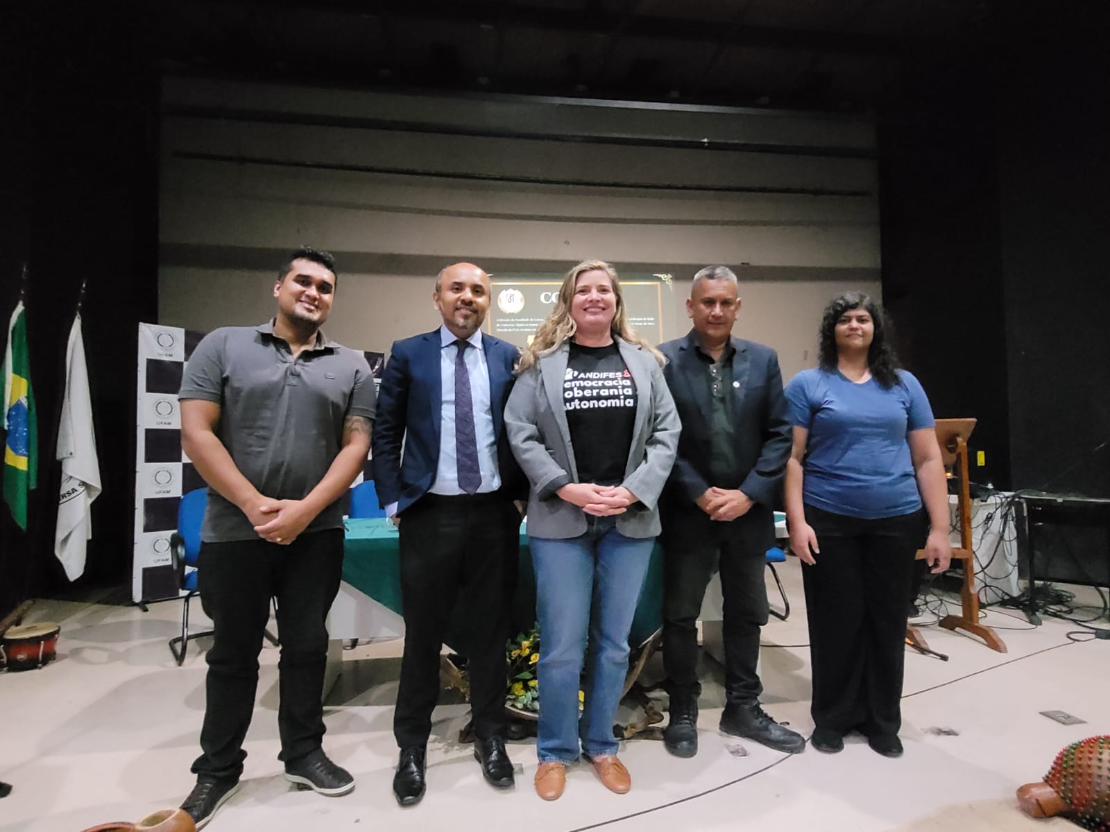 A cerimônia reuniu a comunidade da Flet, familiares e amigos para a celebração da vitória da vontade democrática. A reitora, professora Tanara Lauschner, presidiu o ato de posse, acompanhada do vice-reitor, professor Geone Maia. Em seu pronunciamento, a reitora destacou o cuidado necessário aos gestores ao assumir cargos de liderança na Universidade. “Que bom que vocês já assumem com essa consciência de que, de fato, a gestão exige cuidado, não só o cuidado com o patrimônio da Universidade, não só o cuidado com a qualidade dos nossos cursos de graduação e de pós-graduação, mas o cuidado com as pessoas, o cuidado com os nossos servidores e servidoras, o cuidado com os nossos estudantes. Então, esse de fato é um grande desafio”, expressou. “Quando nós assumimos, verificamos as obras que estavam no PAC expansão. O governo federal, o governo Lula, lançou esse programa PAC expansão para as universidades e esse programa tinha o principal objetivo de concluir as obras que estavam inacabadas pelas universidades. E a gente não entendia porque que o prédio da Flet não estava no programa. Então, levamos essa demanda ao MEC, conversamos lá com o pessoal da Sesu [Secretaria de Educação Superior] e conseguimos o recurso para terminar o prédio da Flet. Temos várias obras que já têm recurso garantido para que elas sejam concluídas e o nosso trabalho à frente da administração superior é concluí-las para que a gente possa ter melhores instalações, salas de aula, laboratórios e possa melhorar esse ambiente de trabalho, esse ambiente de ensino e aprendizagem”, completou a gestora.