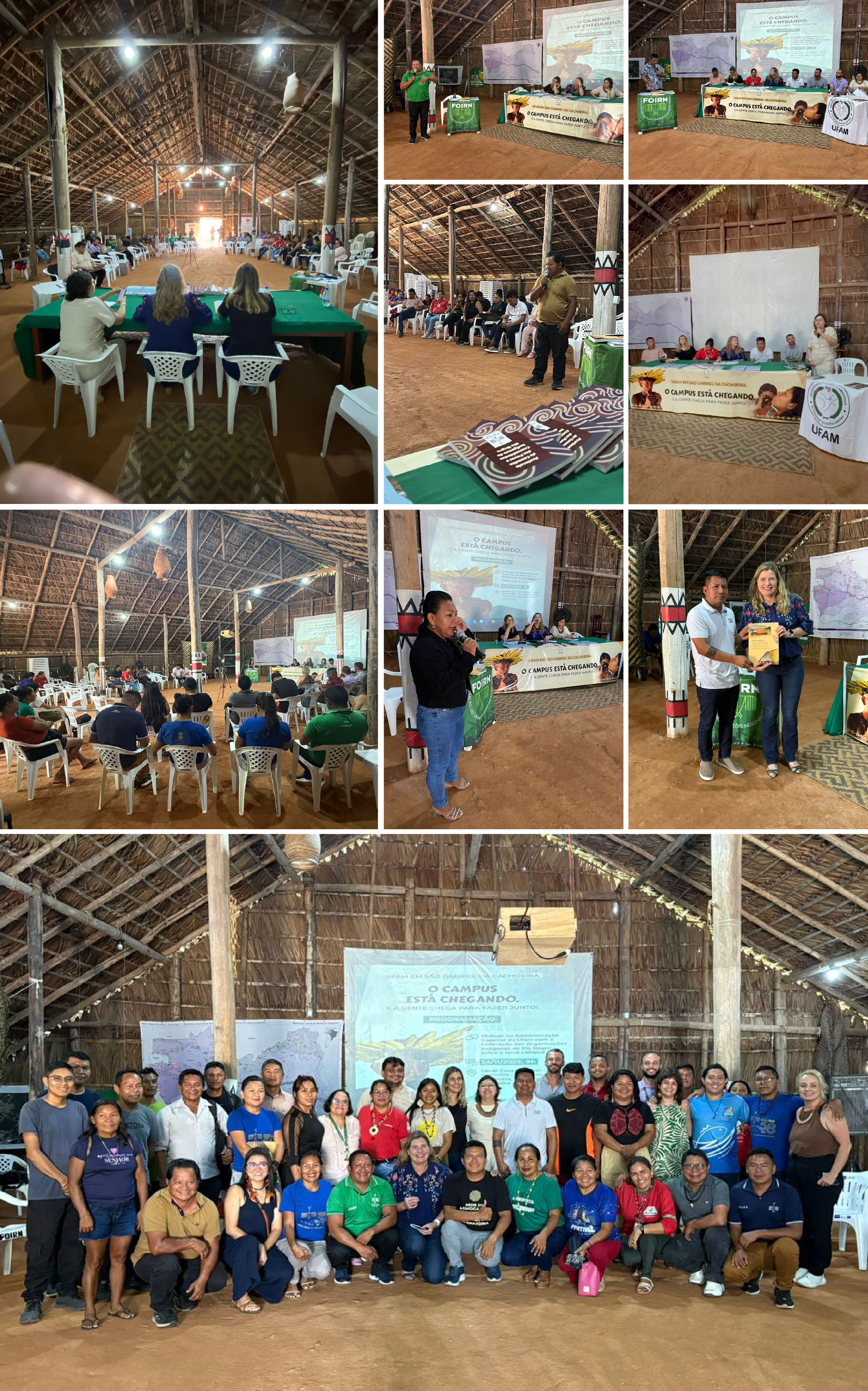 “As falas ressaltaram a importância do campus para fortalecer políticas públicas de educação, promover autonomia dos povos indígenas e ampliar a interiorização do ensino superior no Amazonas. A Universidade veio para escutar, dialogar e construir este projeto de forma coletiva e com a participação dos povos do território”, afirmou Danielle durante a condução dos trabalhos. Ao final da sessão, a FOIRN entregou documentos oficiais à reitora com contribuições das lideranças para o novo campus.