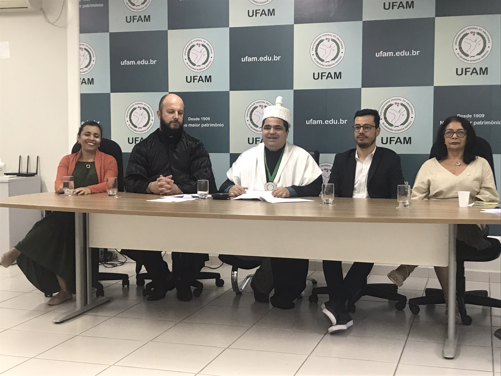 Além do reitor, compuseram a mesa de honra o diretor da Faculdade de Artes, professor João Gustavo Kienen; o diretor do Centro de Educação a Distância da Ufam, professor João Victor Figueiredo Cardoso Rodrigues; a paraninfa da turma do polo de Santa Izabel do Rio Negro e coordenadora do curso, professora Núbia Najar Dias; a coordenadora acadêmica da Faculdade de Artes da Ufam, professora Lucyanne de Melo Afonso; o homenageado com o nome da turma, professor Fernando Antônio da Silva Júnior e o patrono da turma e prefeito do município de Santa Izabel do Rio Negro, José Ribamar Fontes Beleza.