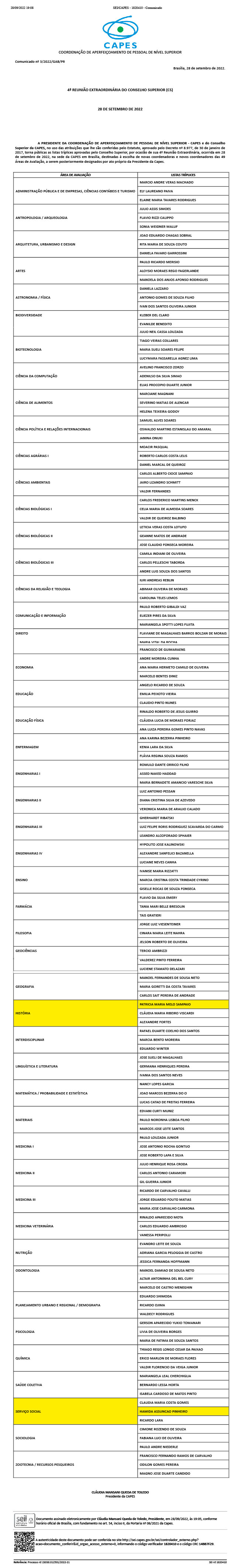 - fazer interlocução com membros do Conselho Técnico-Científico da Educação Superior (CTC-ES), principal colegiado da Capes para a Avaliação Quadrienal, para informá-los das especificidades das áreas;