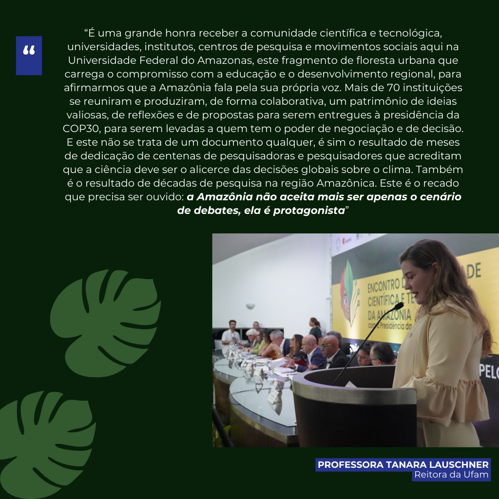 Confira aqui o conteúdo integral da Carta entregue por representantes das comunidades acadêmica, científica e tecnológica da região, que foi lida pela reitora da Ufam durante o evento.
