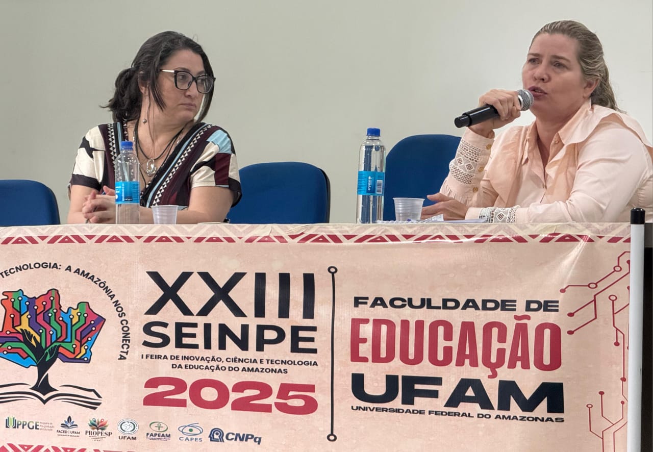 A tarde da última terça-feira, 23, marcou a abertura oficial do XXIII Seminário Interdisciplinar de Pesquisa e Pós-Graduação em Educação (Seinpe), com a palestra inaugural “Ciência, Educação e Tecnologia: A Amazônia nos conecta”, ministrada pela professora doutora Tanara Lauschner, reitora da Universidade Federal do Amazonas (Ufam). O evento, que ocorre de 23 a 26 de setembro na Faculdade de Educação da Ufam, integra também a I Feira de Inovação, Ciência e Tecnologia da Educação do Amazonas (I FICTEA).