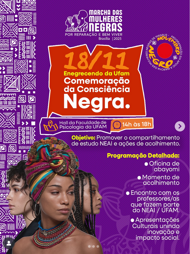 No post do Novembro Negro no Instagram, a organização frisa que este é um “[...] tempo de luta, formação e celebração! O Comitê da Marcha das Mulheres Negras do Amazonas preparou uma programação especial para fortalecer a pauta contra o racismo e garantir a representatividade do Norte em Brasília”.