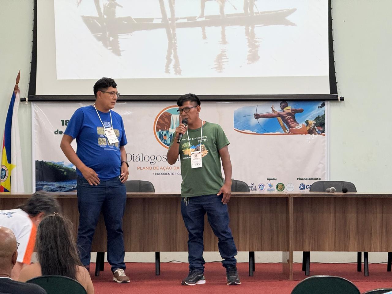 Os Diálogos Amazônicos I começaram às 14h, reunindo representantes indígenas e comunitários para discutir proteção territorial, gestão participativa e desafios socioambientais. Durante a mesa, o consultor do Programa Waimiri Atroari, Walter Blos, fez uma apresentação especial sobre a origem e a história do povo Waimiri Atroari, destacando seu processo de resistência, os impactos sofridos ao longo das décadas e o papel das comunidades na defesa do território tradicional.