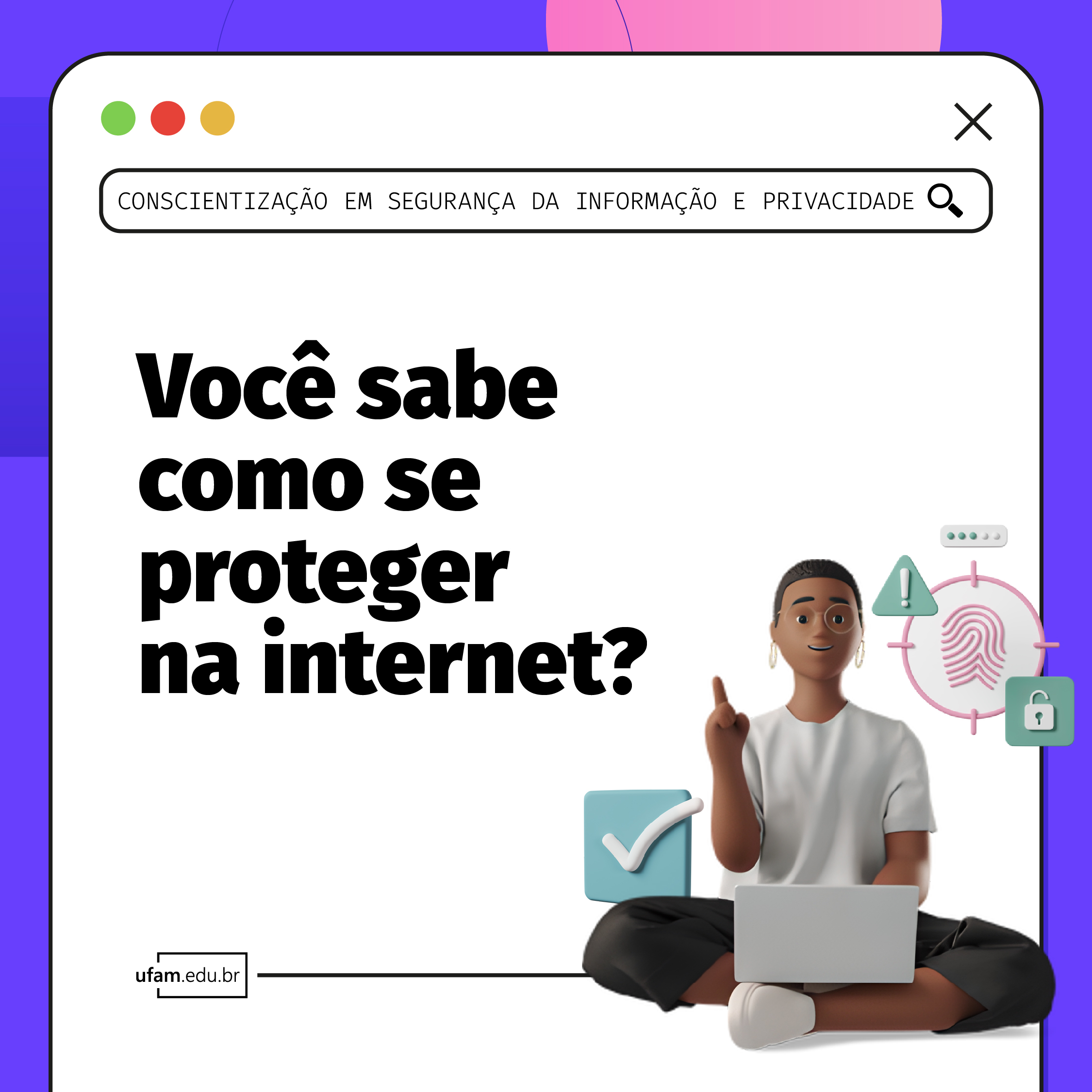 As boas práticas de segurança e privacidade e os canais de suporte e denúncias, além de muitas dicas e maneiras de se proteger no ambiente virtual são apresentadas a partir de hoje, 24. Acesse os perfis da Ufam nas redes sociais e reforce a sua proteção no ambiente virtual. O conteúdo aborda estes sete temas gerais: Proteção de Dados, Autenticação Forte e Senhas, Prevenção de Vazamento de Dados, Proteção contra Golpes na Internet, Segurança contra Códigos Maliciosos, Trabalho Remoto Seguro e Redes Sociais.