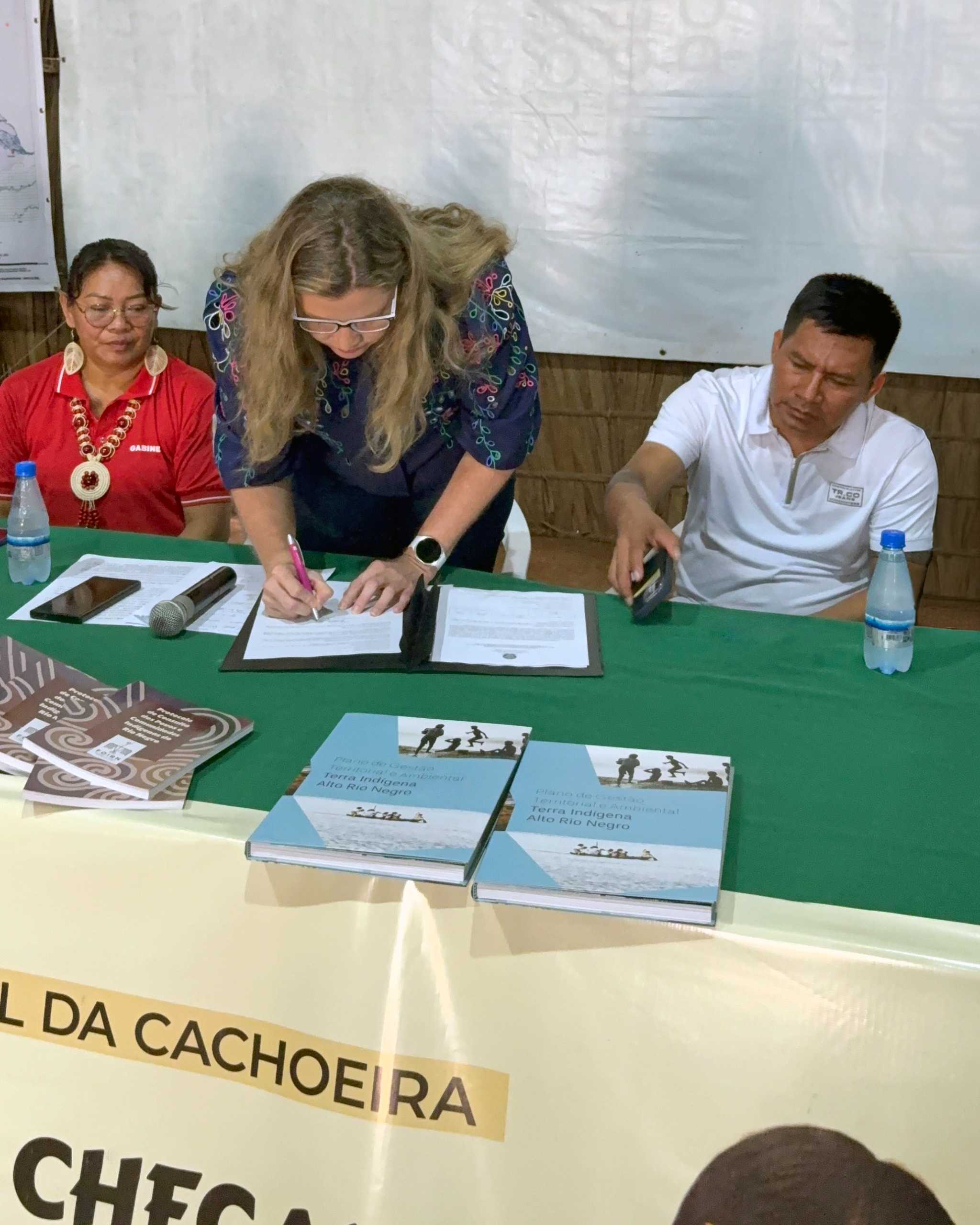 Durante a cerimônia, a reitora da Ufam, professora Tanara Lauschner, realizou a assinatura do contrato com a empresa vencedora da licitação responsável pela construção do campus de São Gabriel da Cachoeira, consolidando institucionalmente o início das obras. O gesto foi acompanhado por autoridades municipais e representantes da FOIRN, reforçando o caráter colaborativo da iniciativa.