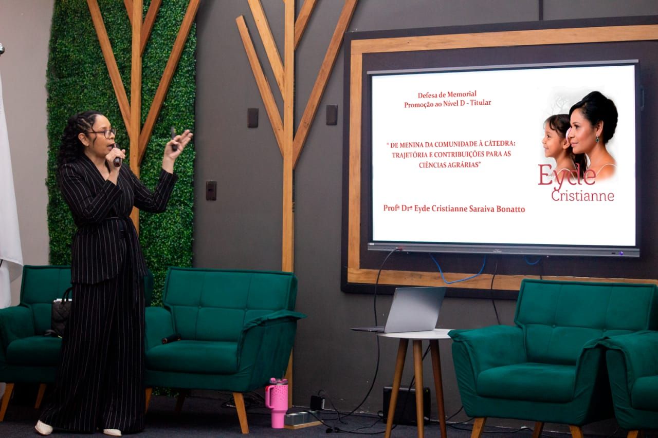 No último dia 24 de novembro, a professora Eyde Cristianne Saraiva Bonatto teve o memorial acadêmico aprovado e, como resultado, tornou-se a primeira docente titular do Departamento de Engenharia Agrícola e Solos, vinculado à Faculdade de Ciências Agrária da Universidade Federal do Amazonas (FCA/Ufam). A defesa ocorreu no Auditório Vitória Régia do Centro de Ciências do Ambiente (CCA), no setor Sul do Campus Sede.