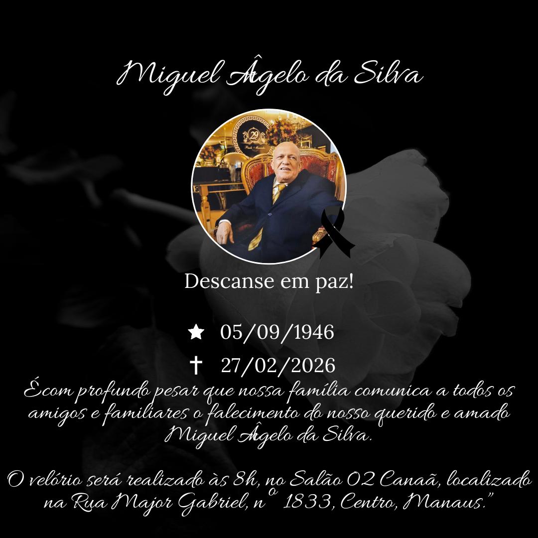 A Universidade Federal do Amazonas (Ufam) manifesta profundo pesar pelo falecimento do professor aposentado Miguel Ângelo da Silva, ocorrido na sexta-feira, 27 de fevereiro. O velório ocorre na Funerária Canaã (Rua Major Gabriel, 1833 - Centro, Manaus) e o cortejo para o sepultamento inicia às 15h30.