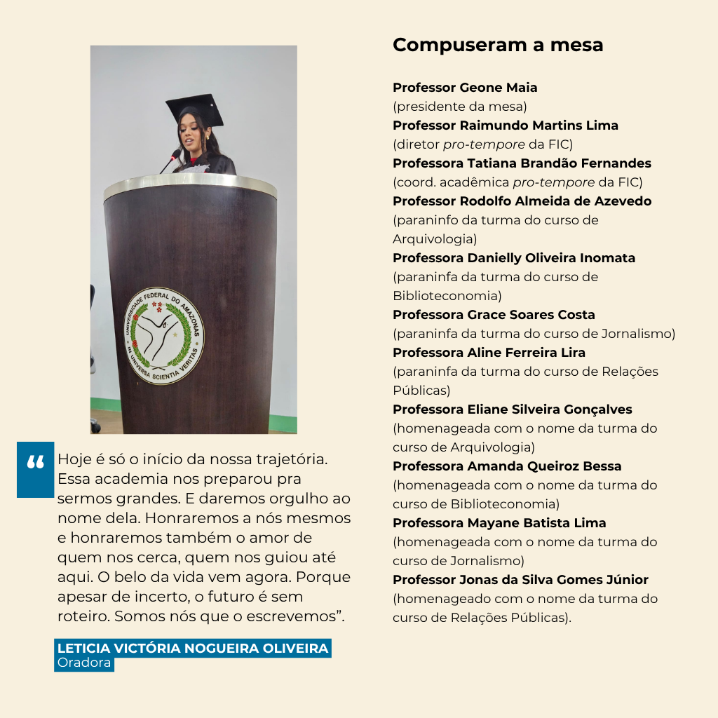 Ufam concede outorga de grau a 40 profissionais da Faculdade de Informação e Comunicação -FIC