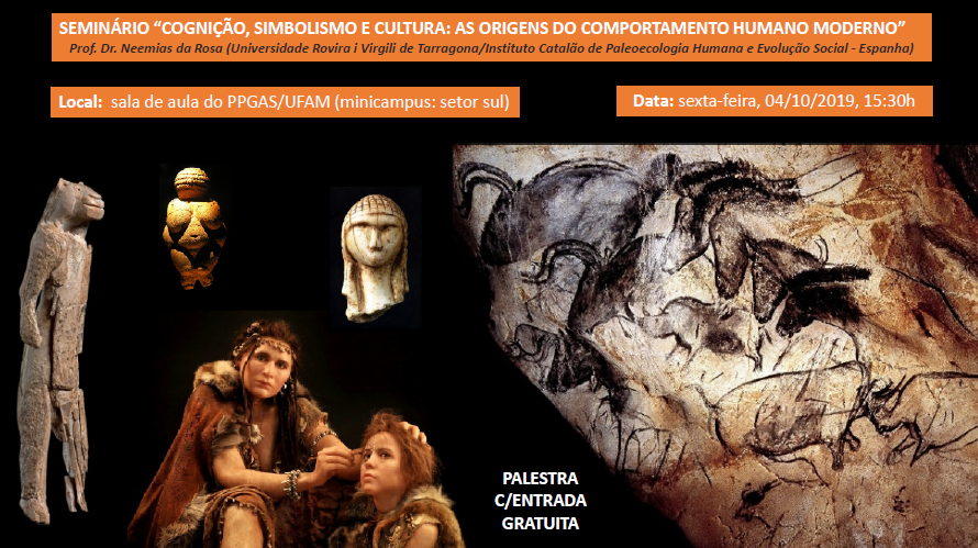 O Programa de Pós-Graduação em Antropologia Social (PPGAS) promove o seminário “Cognição, simbolismo e cultura: as origens do comportamento humano moderno”, O professor Neemias da Rosa, da Universidade Rovira i Virgili de Terragona/Instituto Catalão de Paleoecologia Humana e Evolução Social da Espanha, profere a palestra intitulada “Cognição, simbolismo e cultura: as origens do comportamento humano moderno”. A palestra ocorre nesta sexta-feira, 4, na sala de aula do Programa (PPGAS), no setor Sul do Campus, às 15h30.