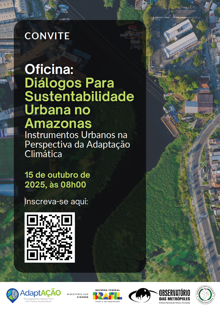 Durante a oficina serão compartilhados os resultados parciais do Planejamento Urbano para um Futuro Sustentável (Projeto AdaptAÇÃO | ReDUS), parceria entre o Ministério das Cidades (Mcid) e a Universidade Federal do Rio de Janeiro (UFRJ) que envolve, ainda, o Instituto de Pesquisa e Planejamento Urbano e Regional (IPPUR) e o Observatório das Metrópoles (OM).